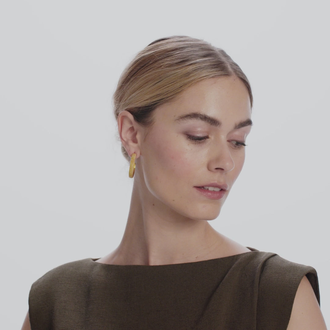 Delicate beads decorate the edges of these sculpted gold hoops.