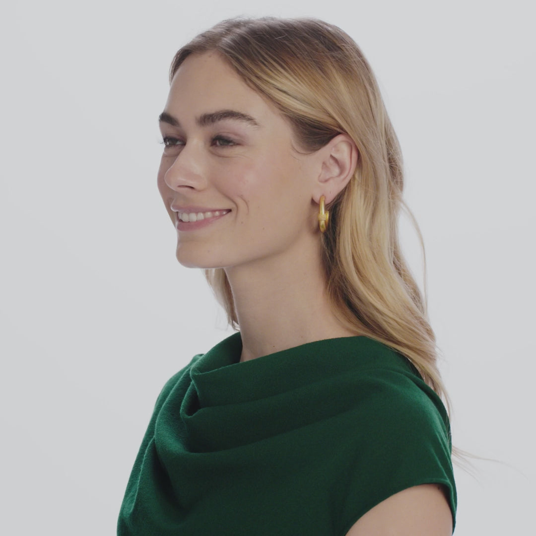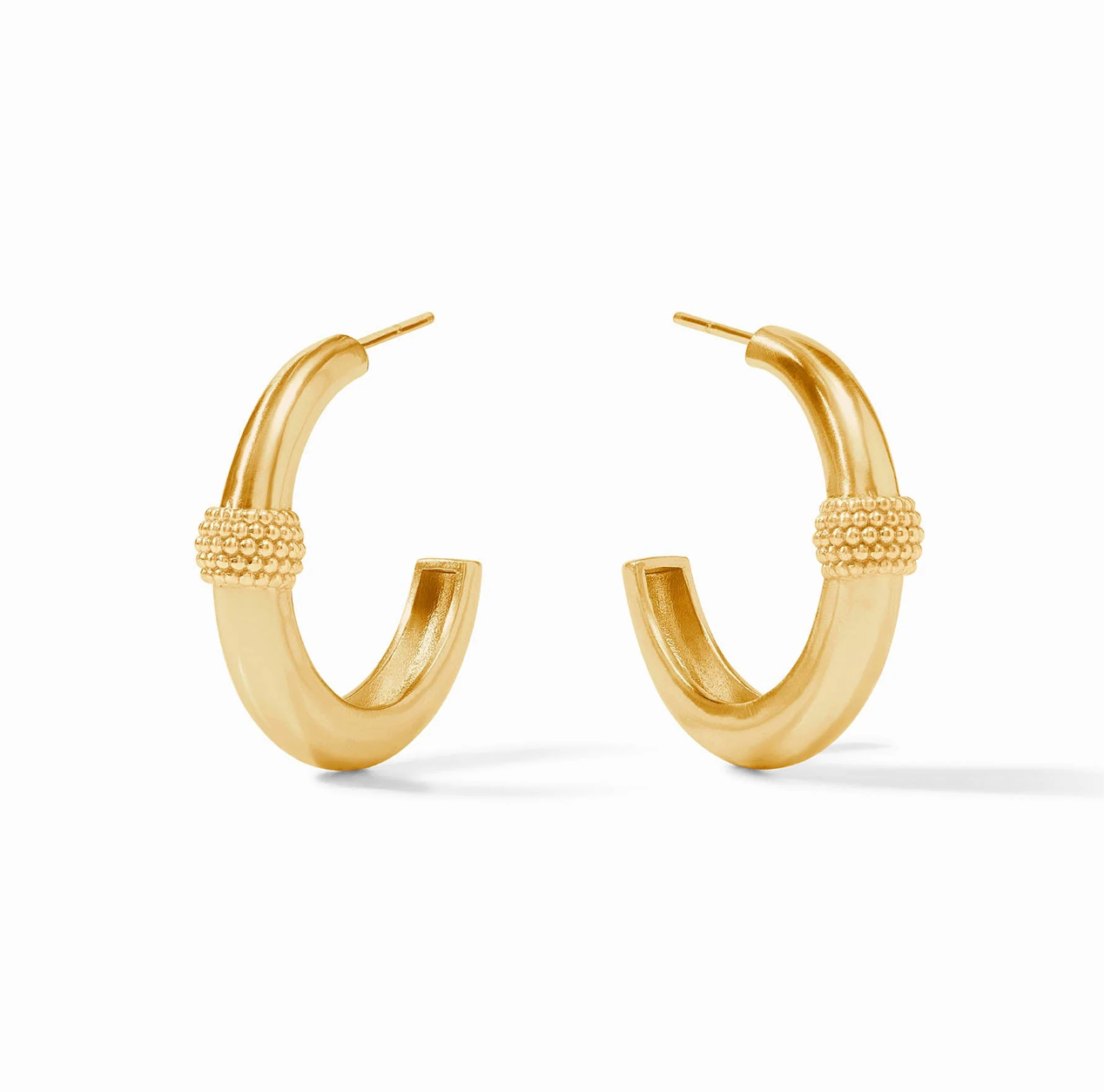 Each gently tapering hoop features a soft, smooth finish and a band of delicate golden beads.
