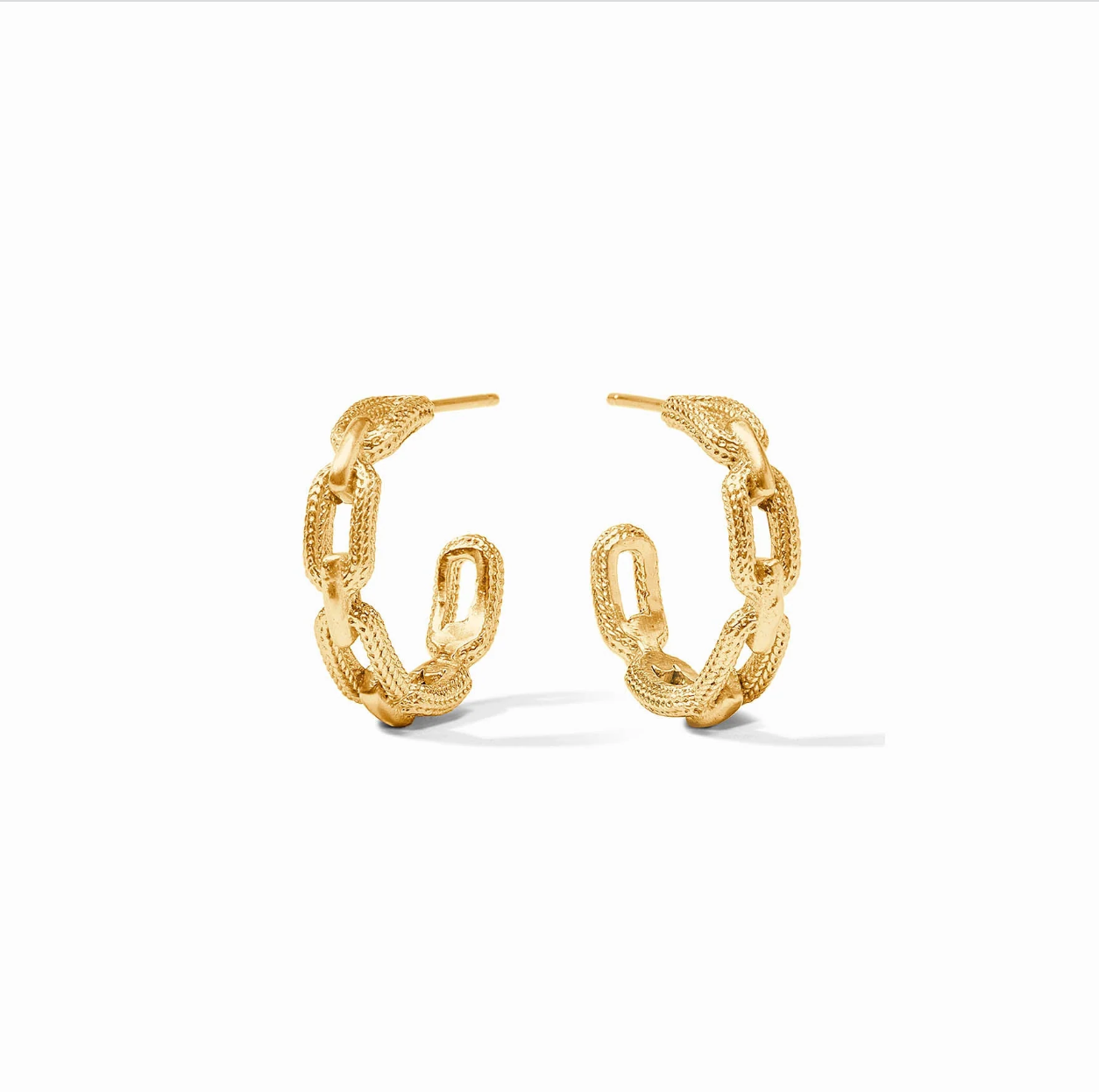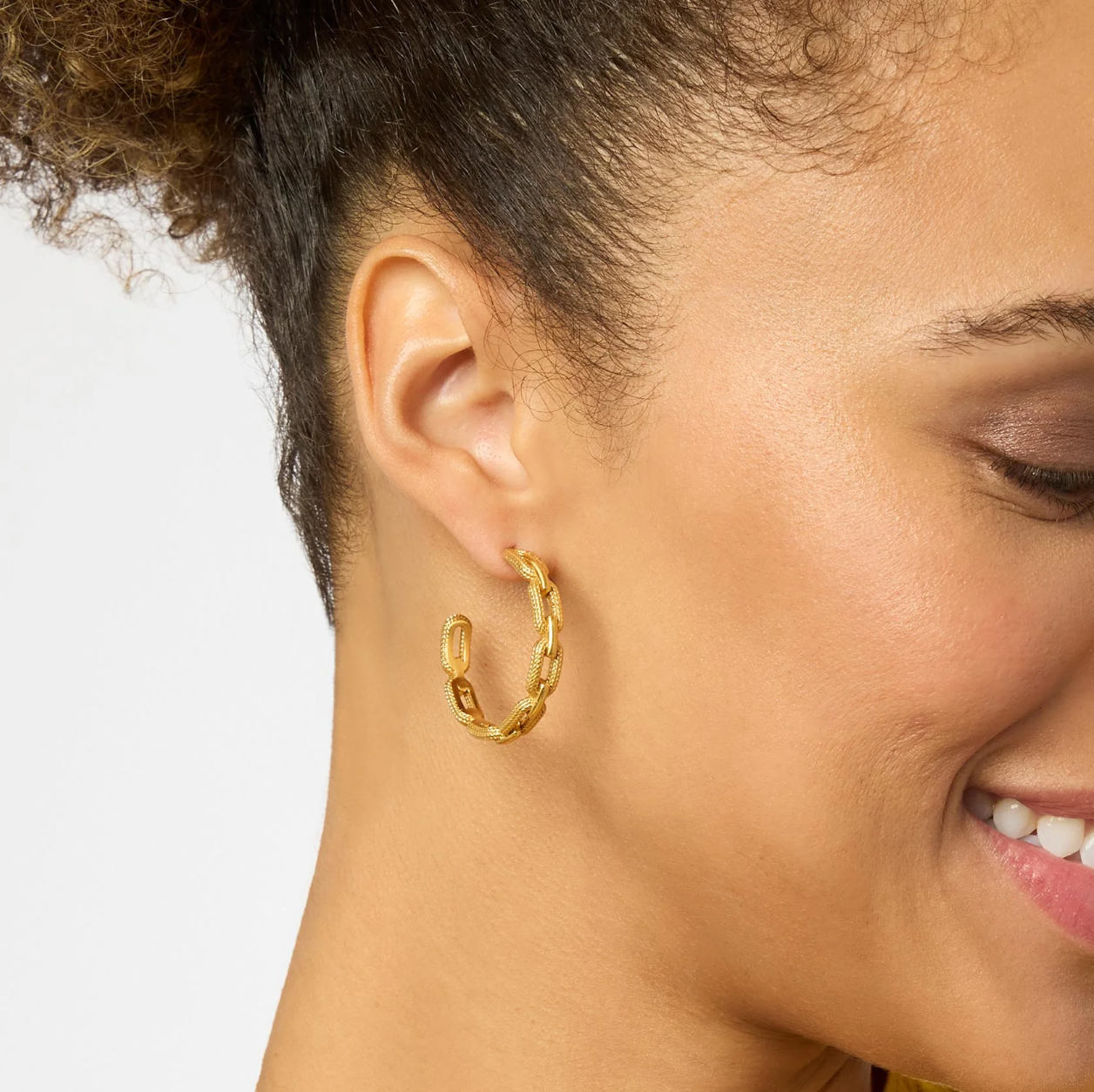 Elongated oval links textured with braided golden wire, fused with smooth connecting links.<