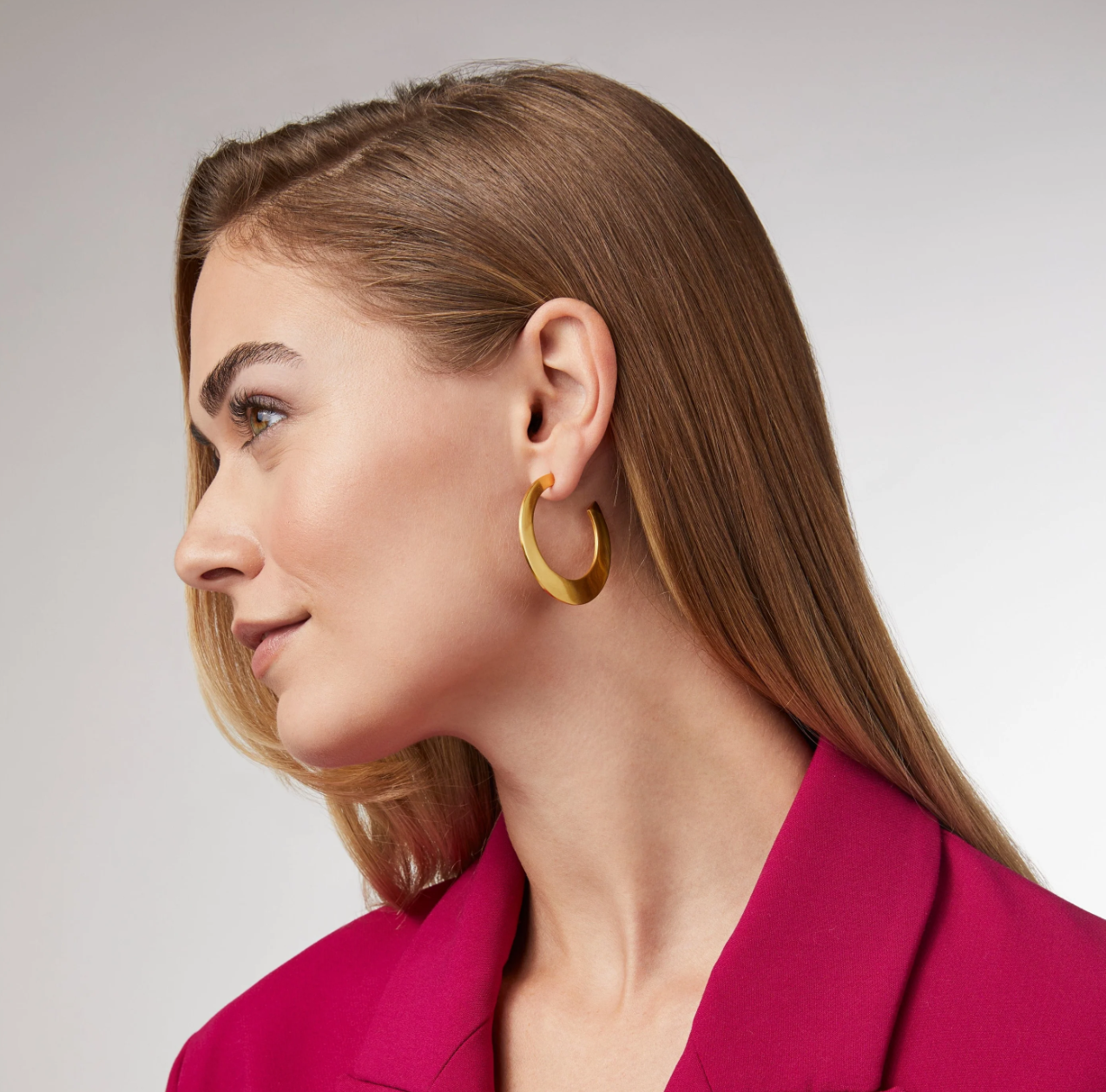 The wedge shape of these groovy flat hoops are reminiscent of a phase of the moon, but they're suitable for daytime and nighttime wear alike.