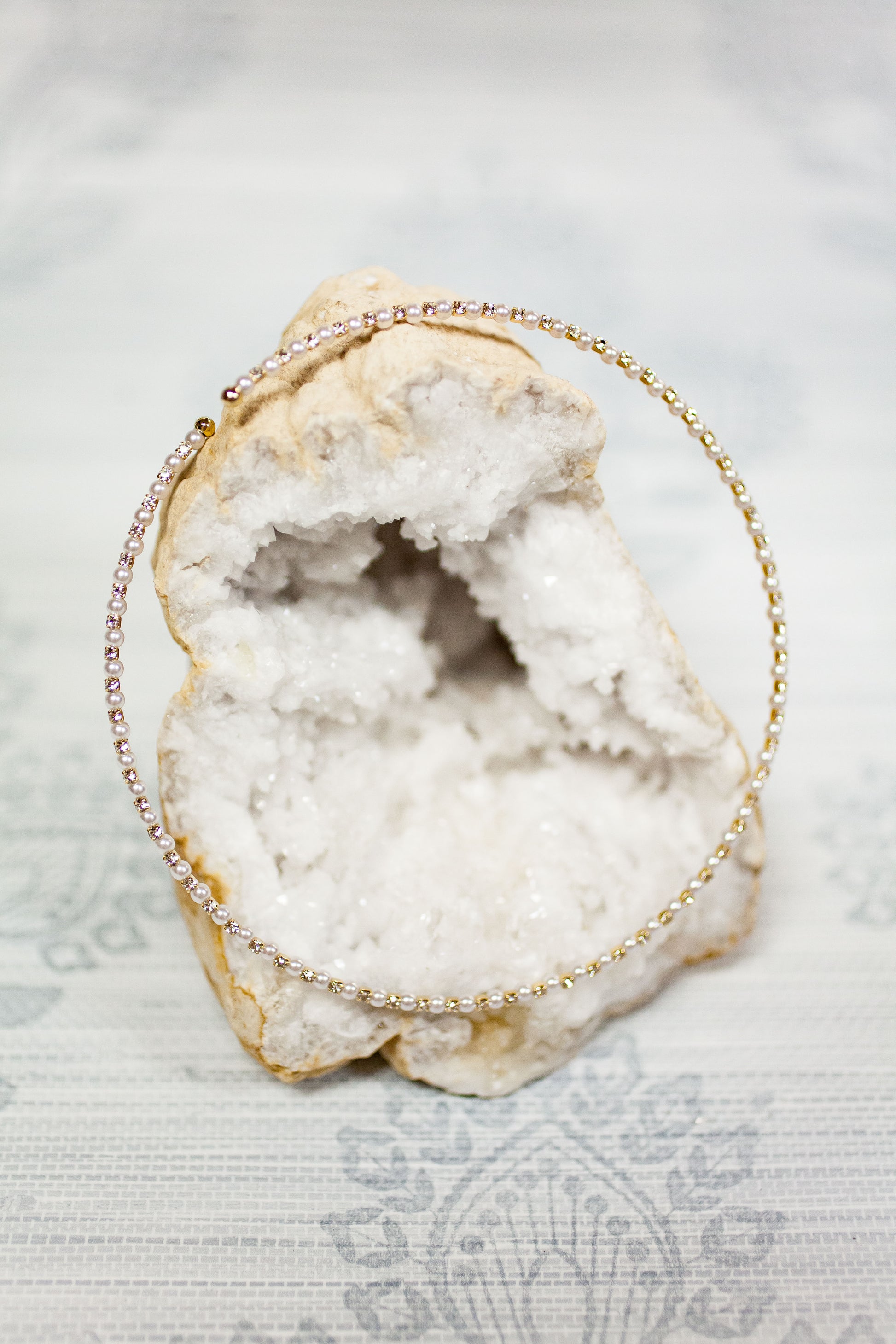 Ella eternity choker necklace in high quality clear CZ and shell pearl, adjustable size, Gold finish