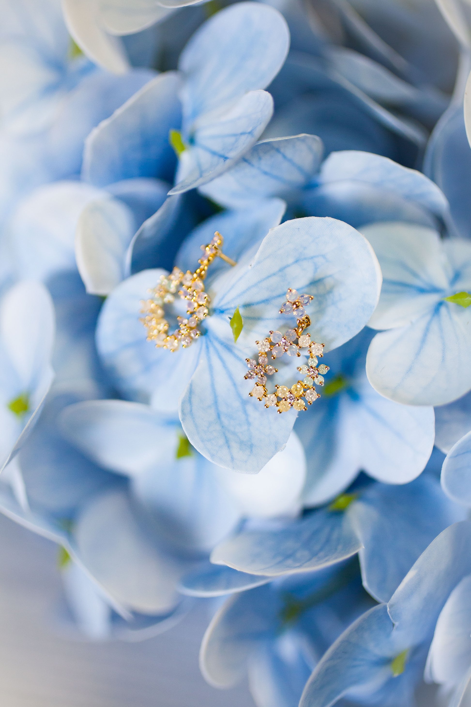 Bella mini garden drop earrings in hand set high quality Ice CZ, Gold finish, Pastel combo