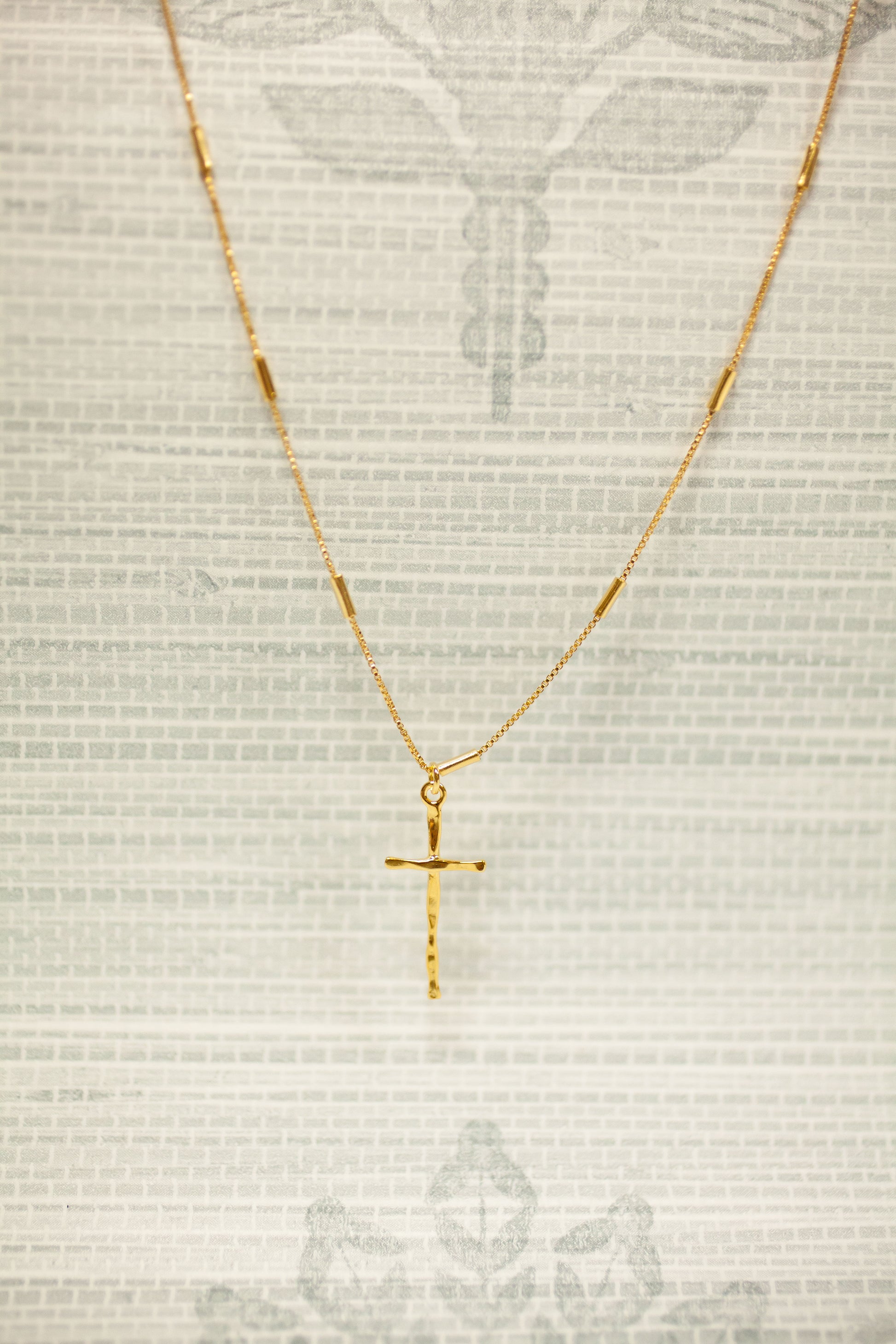 Gabrielle hand sculpted cross pendant necklace, Gold finish