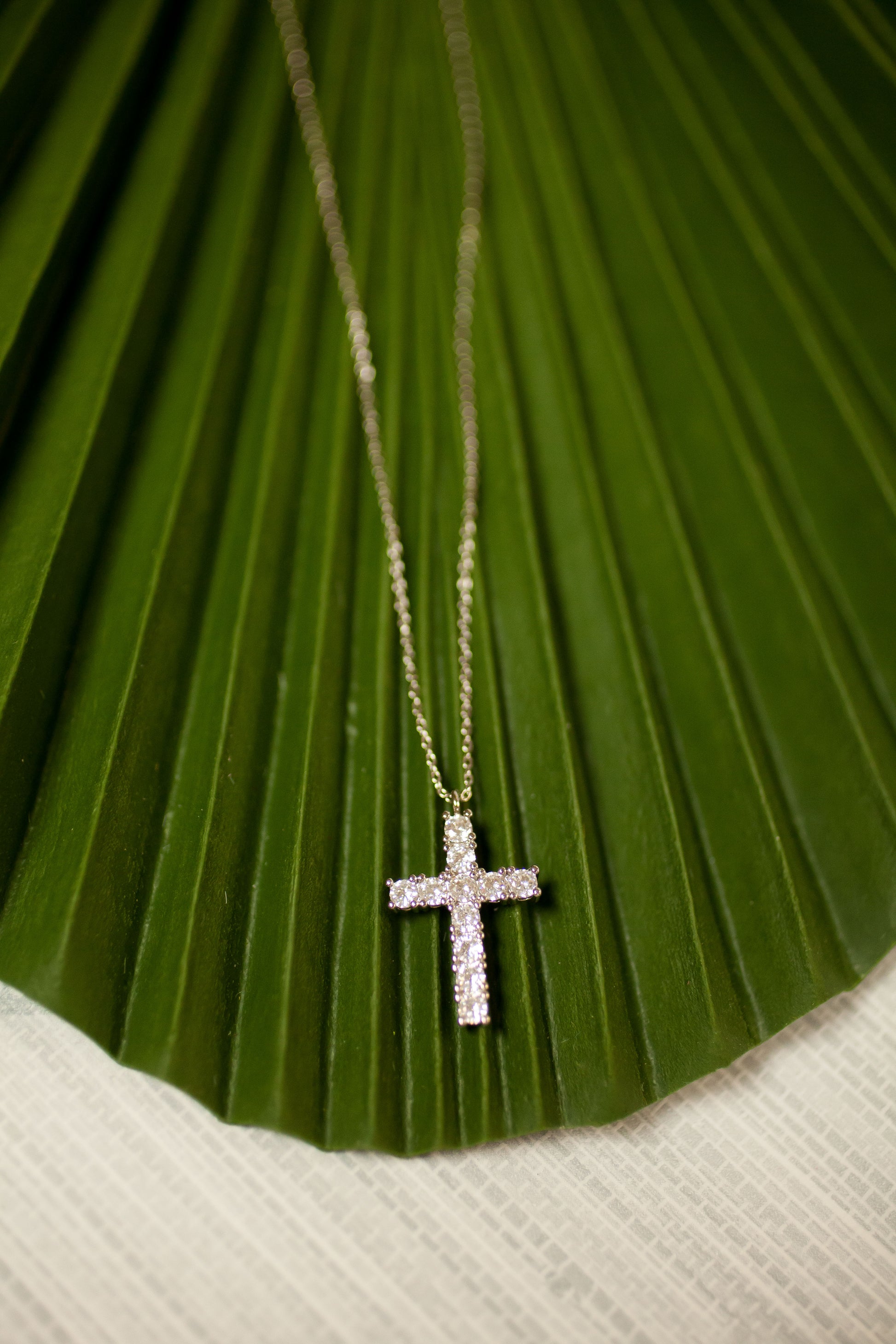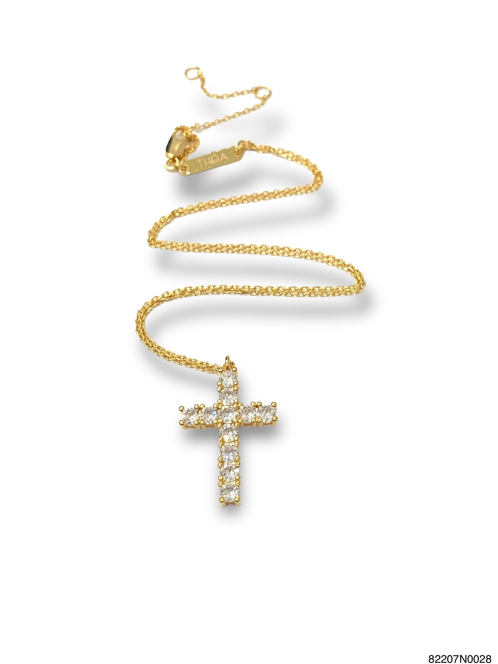 Julia cross necklace in hand set high quality CZ, Gold or White Gold finish, Clear